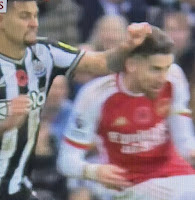 Back to the game, I suppose. And very little to report, as Newcastle were able to hold Arsenal off with ease. Plenty of possession, and very little to show for it. Arteta's changes - Trossard and Vieira - hardly covered themselves in glory with a serious of poorly delivered free kicks and corners.The main incident to note is that Guimaraes was finally booked in the 88th minute for a hand to the throat of Vieira. His umpteenth such infringement of the match, and he actually had the gall to complain about it!